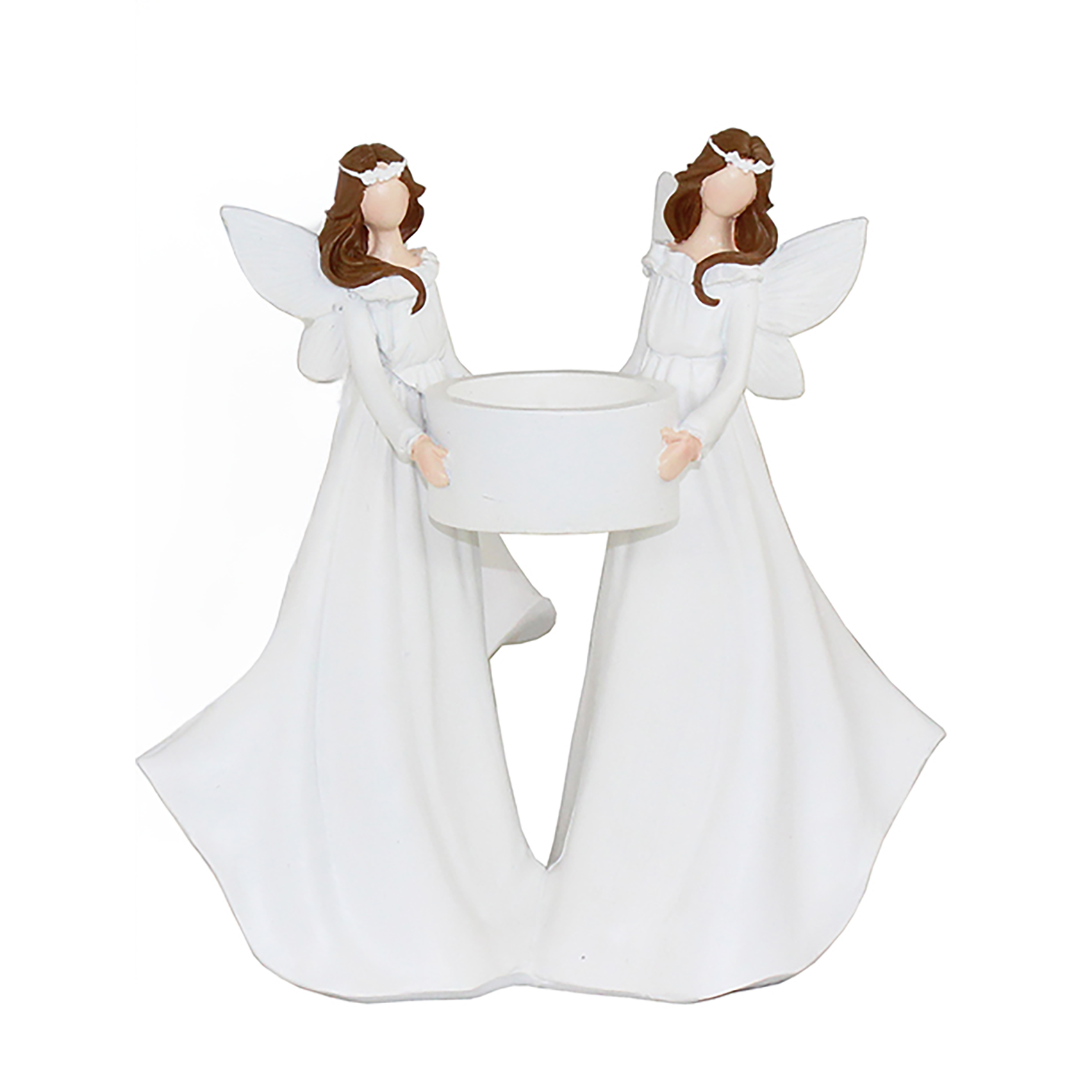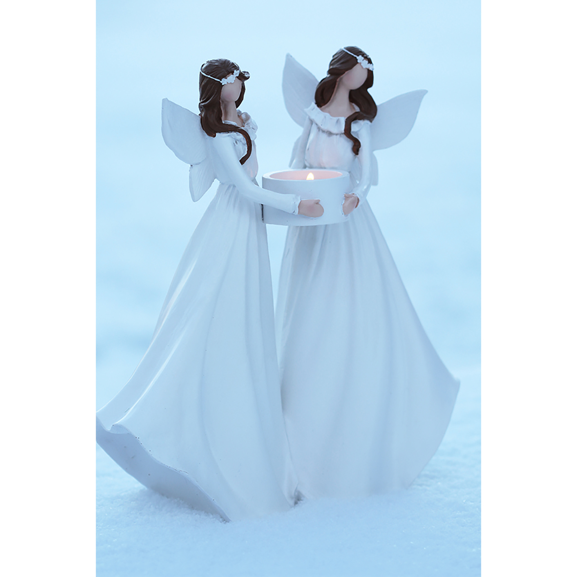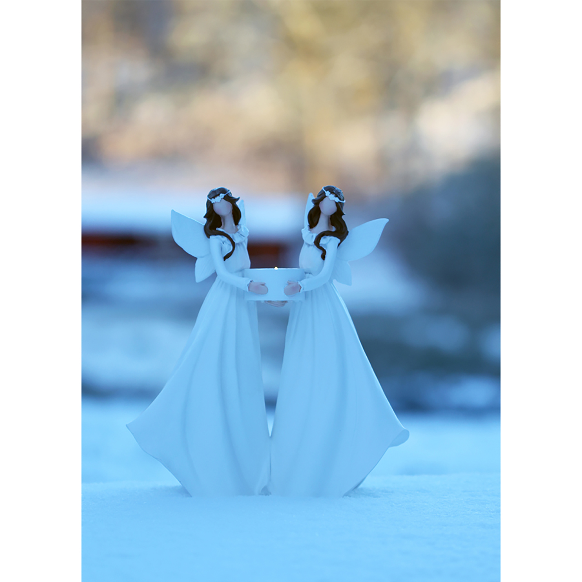 Här är två Änglar som tillsammans håller i en ljushållare för värmeljus.