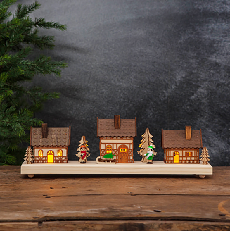 Detta är en batteridriven ljusstake med många detaljer för inomhusbruk. Ljusstaken har 3 stycken LED-ljuskällor med varmvitt sken. En härlig dekoration som sprider julkänsla i hemmet. Den inbyggda timern gör det lätt att ställa in när ljusstaken ska lysa.